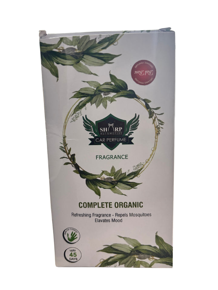 The Sharp Automotive Complete Organic Car Perfume offers a refreshing and natural fragrance made from organic ingredients. Designed not only to elevate mood but also to repel mosquitoes, it ensures a pleasant driving experience for up to 45 days. Safe for children and ideal for maintaining a clean, eco-friendly environment inside your car.
